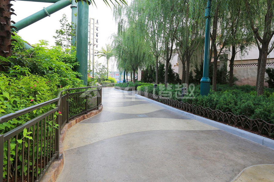 彩色混凝土鹽巖面藝術(shù)地坪被廣泛應(yīng)用于各類游樂園、主題公園、景觀地坪等地面鋪裝。